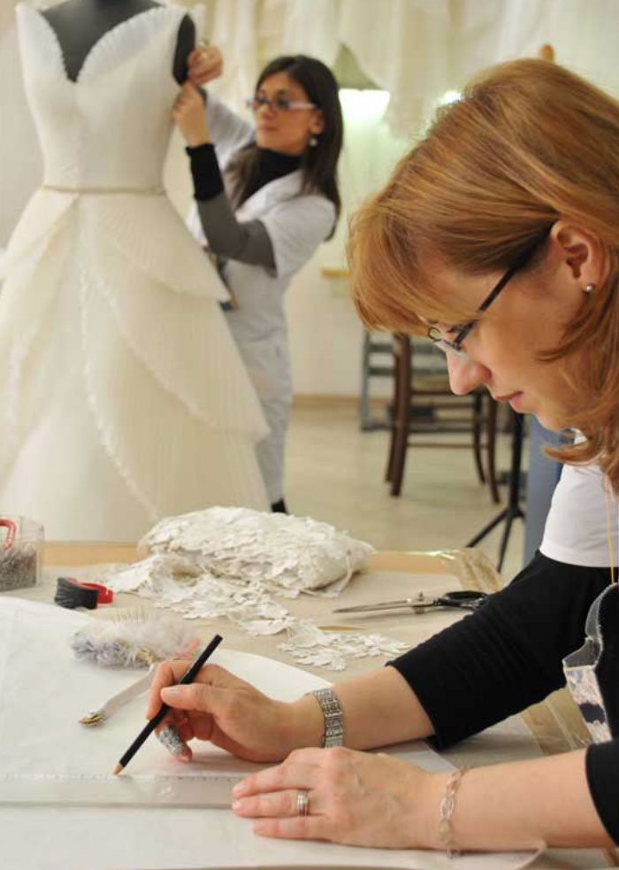 Ogni abito è realizzato rigorosamente a mano, seguendo i dettami